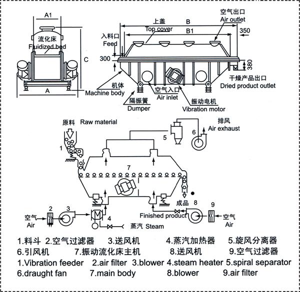 振動源采用振動電機(jī)驅(qū)動,運轉(zhuǎn)平穩(wěn),維修方便,噪音低,壽命長。流態(tài)化勻稱,無死空隙和吹穿現(xiàn)象,可以獲得均勻的干燥、冷卻制品。可調(diào)性好,適應(yīng)面寬。料層厚度和機(jī)內(nèi)移動速度以及全振幅變更均可實現(xiàn)無極調(diào)節(jié)。對物料表面的損傷小,可用于易碎物料的干燥,物料顆粒不規(guī)則時亦不影響工作效果。采用全封閉式的結(jié)構(gòu),有效地防止了物料與空氣間空叉感染,作業(yè)環(huán)境清潔。機(jī)械效率與熱效率高,節(jié)能效果好,比一般干燥裝置可節(jié)能30%-60%。